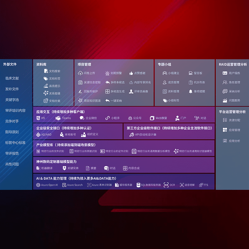 医疗器械产品上市前,,,,要熟悉严格与繁复评审标准,,,,整理分析监管机构指导文件中的海量信息。。。企业急需一个智能化解决方案,,,提升知识管理效率,,,,提高评审通过率,,以提升其市场竞争力。。
